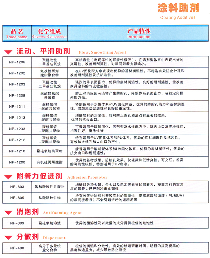 > 流动、平滑助剂