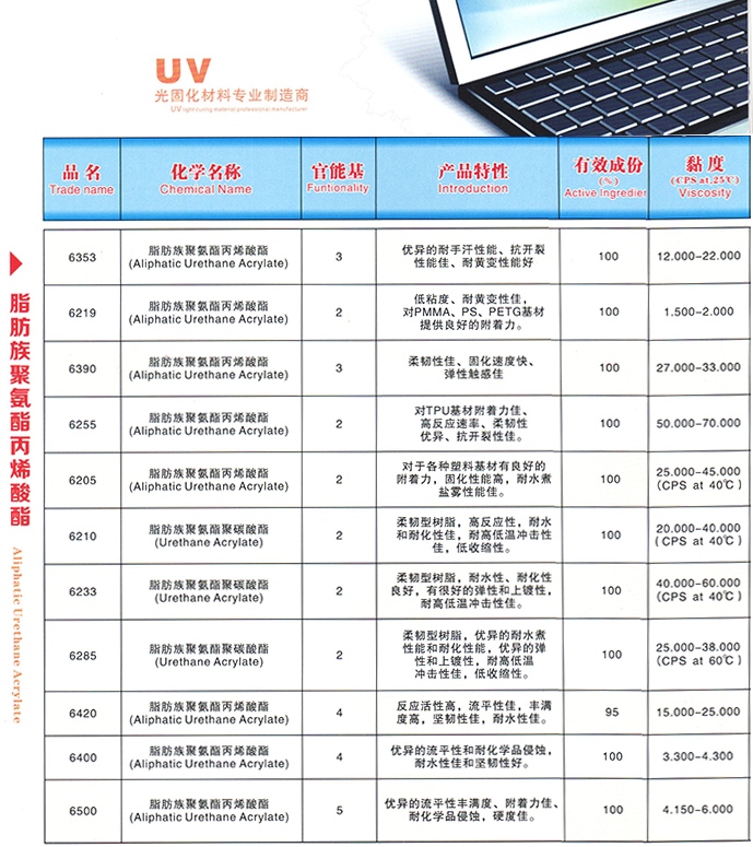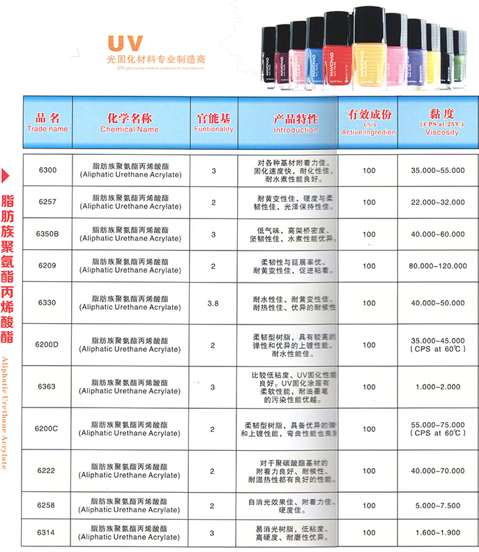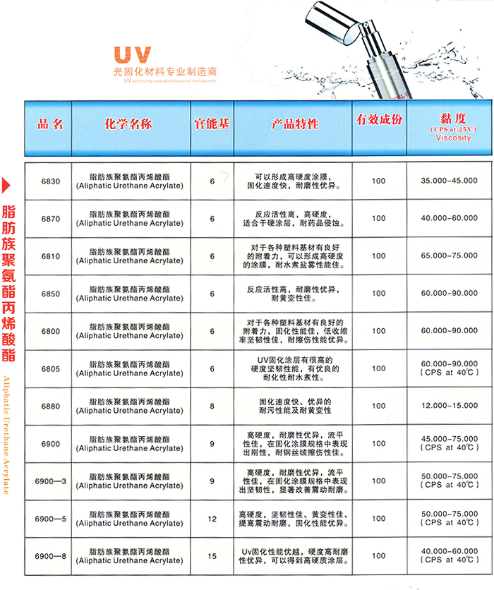 > 脂肪族聚氨酯丙烯酸酯